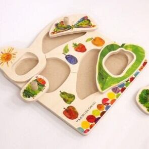 丁寧に作られた木製型はめパズルで、木製の大きめのノブが幼児の手にやさしく触れ合います。