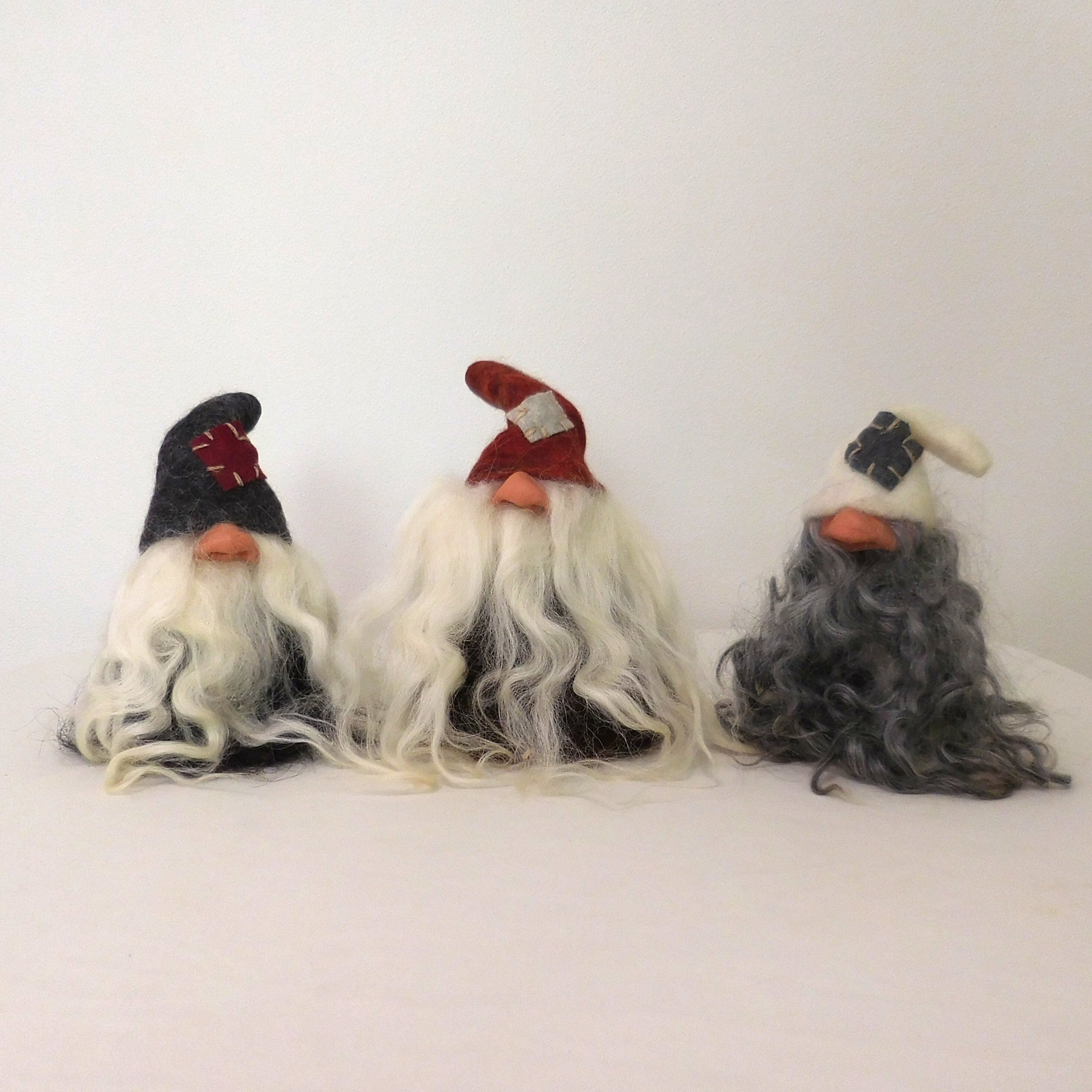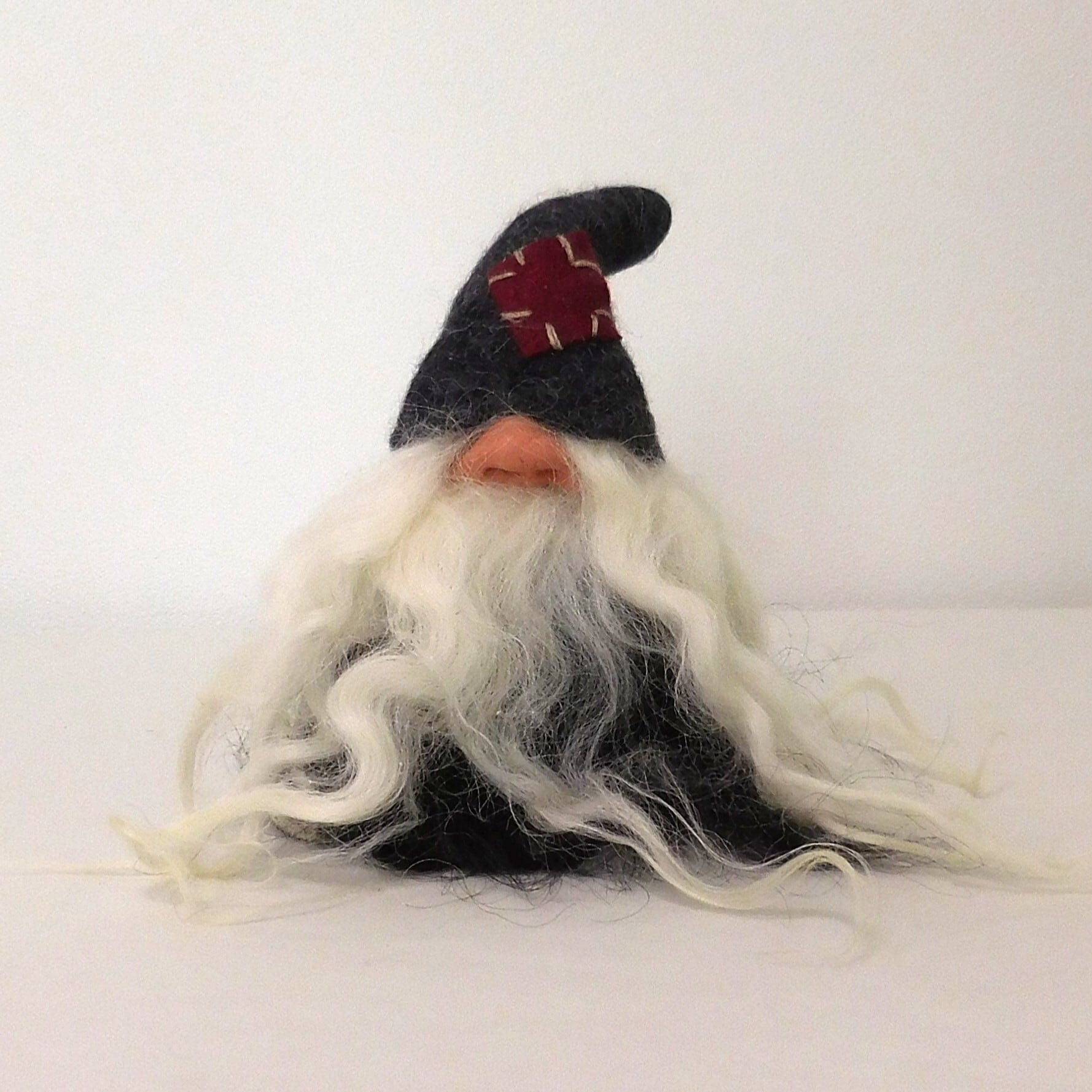 今回は、目や足元もひげの中に隠れていて見えず、鼻のみ特徴的にあらわれているトムテのご紹介です。スウェーデンのウール作家ウルリーカさんの品で、足が見えていないトムテです。