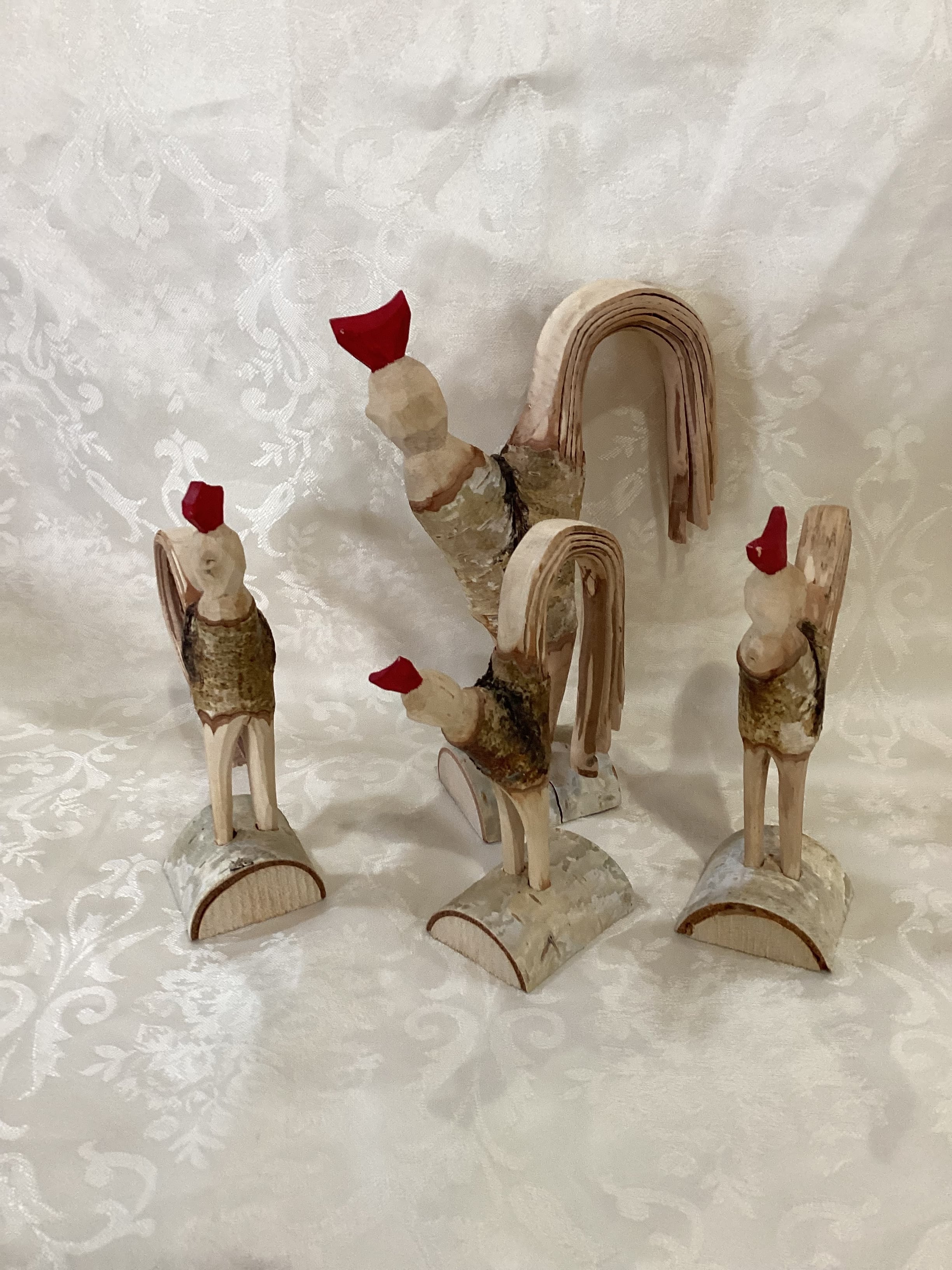 スウェーデンの天然木(白樺メイン)の手仕事による とり のオブジェのご紹介です。