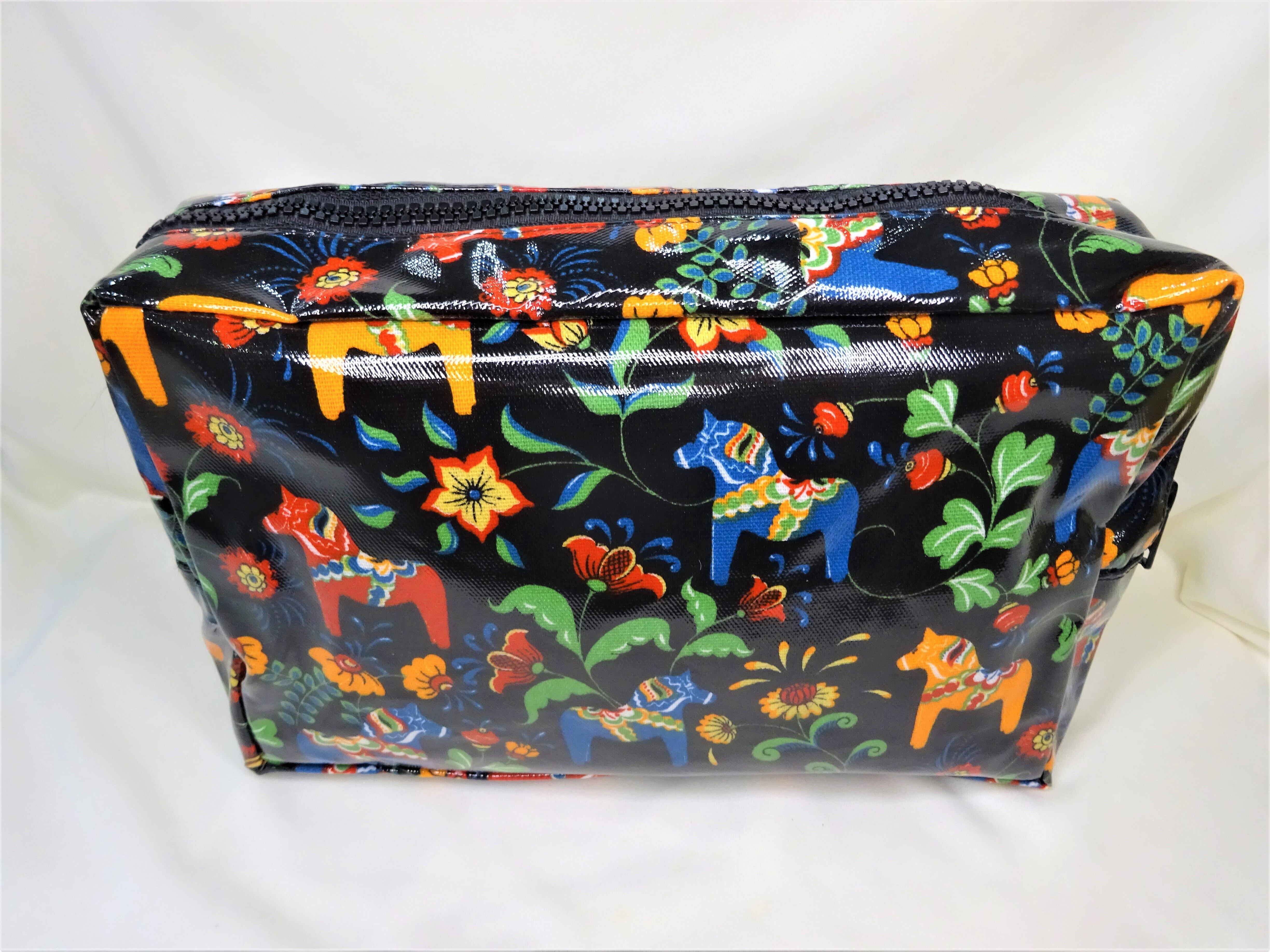 スウェーデンのARVIDSSONS TEXTILL のLeksand mini のご紹介です。柄は、スウェーデンならではのダーラナホースが用いれています。色は白と黒の2種類です。また、ポーチ内の色はともに黒です。