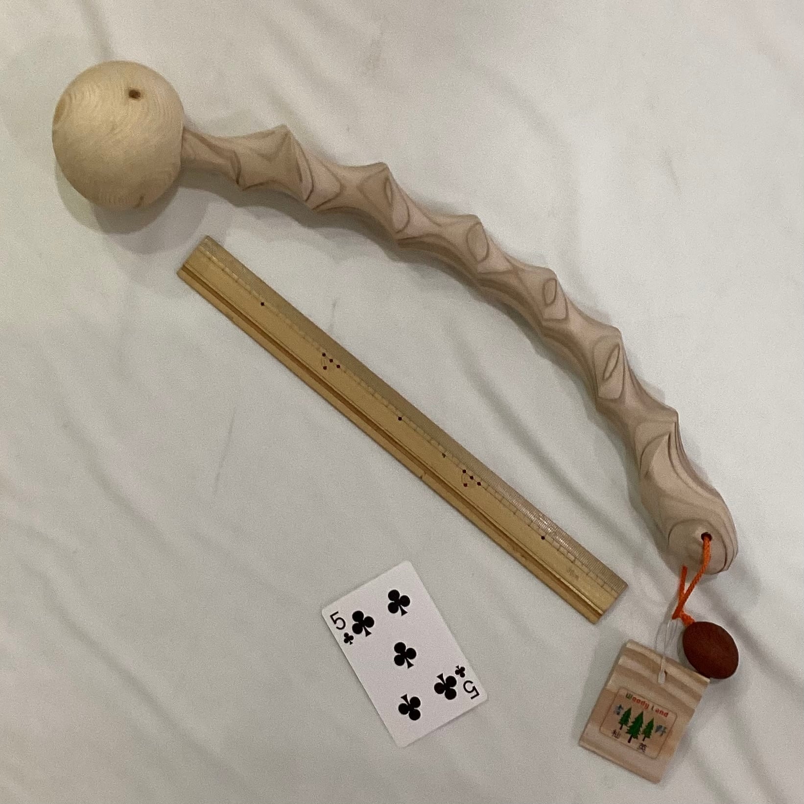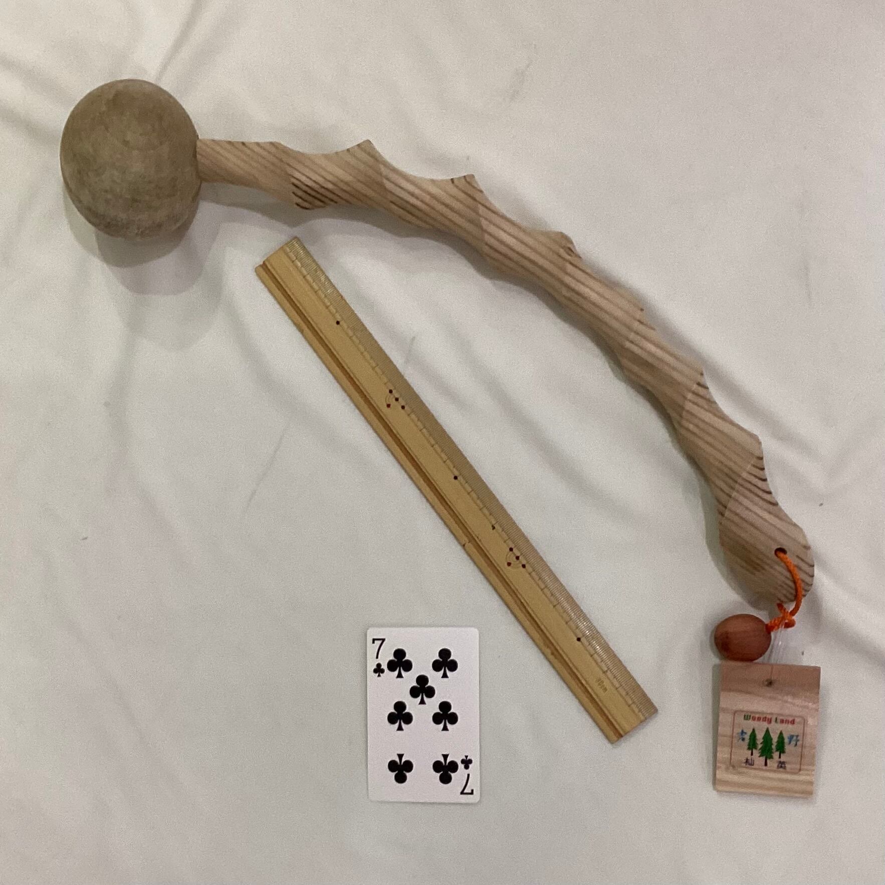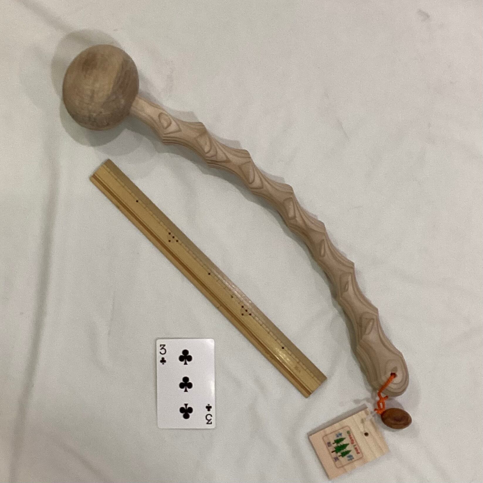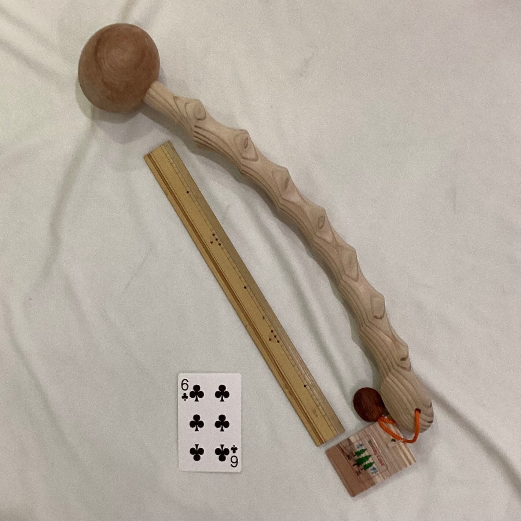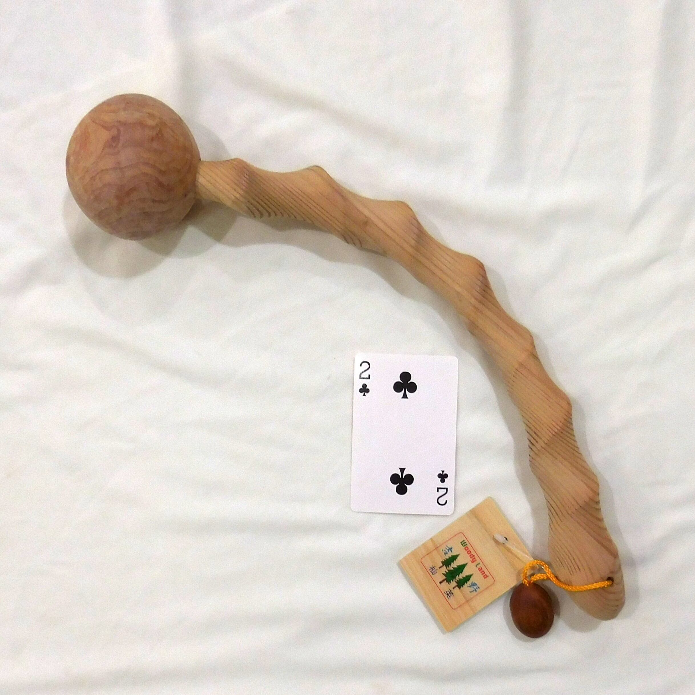 奈良県吉野産の天然木の特性を生かした肩たたきです。手に持ちやすく、木のソフトな弾力が伝わってきます。
