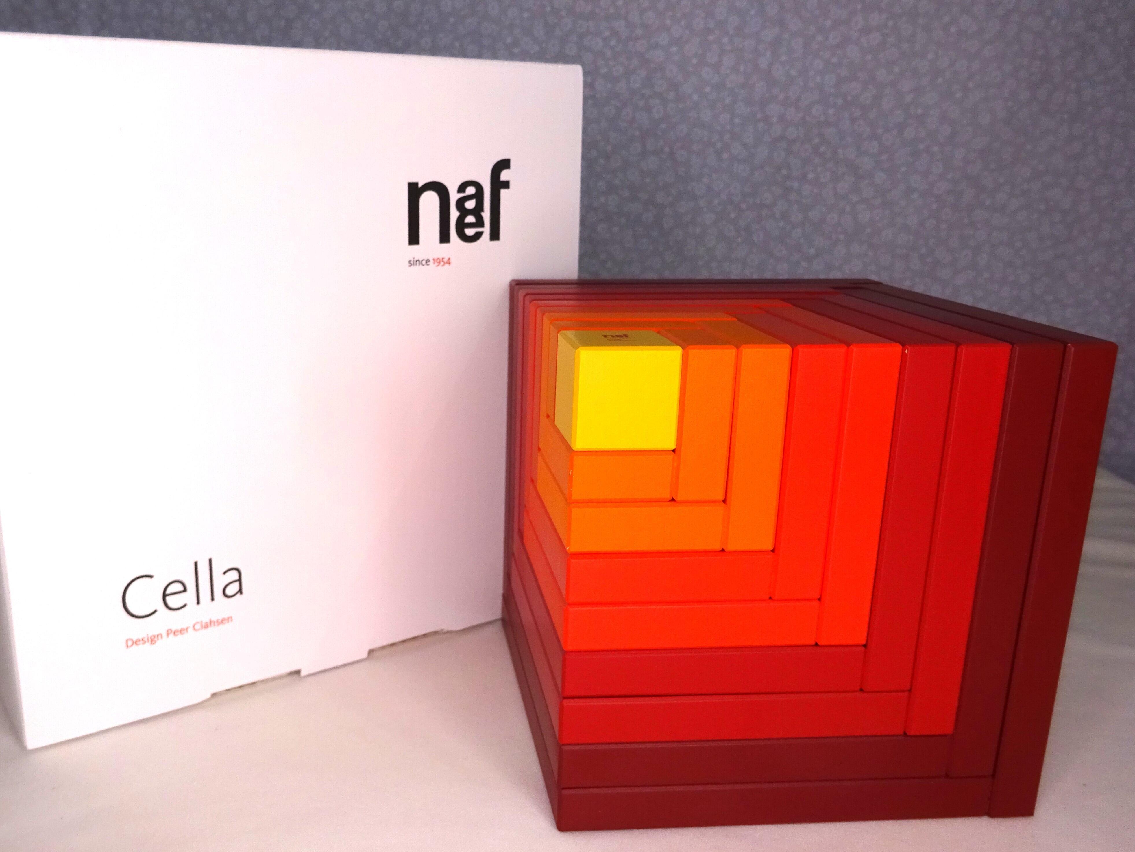 立方体を入れ子のように分割した構造と、5色のグラデーイションが見せる造形の美しさは秀逸です。大人なら、両手で包み込めるこの立方体に宇宙の原理が内蔵されている、と作者ペア・クラ―セン氏は説きます。(1980年)