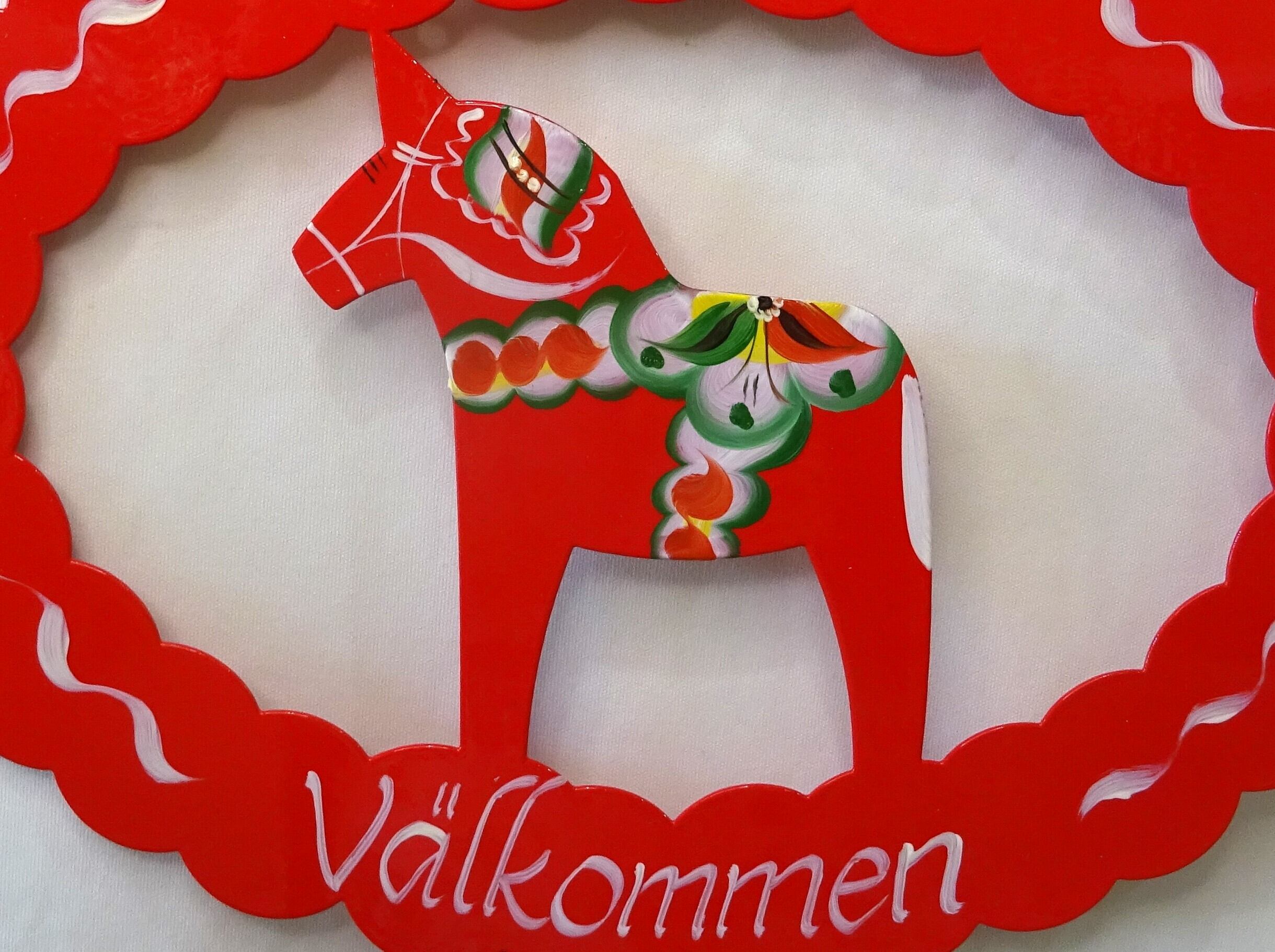 スウェーデン語で、「ようこそ(いらっしゃいませ)」と書いてあり、玄関やお部屋の入り口などに飾ってもお洒落です。