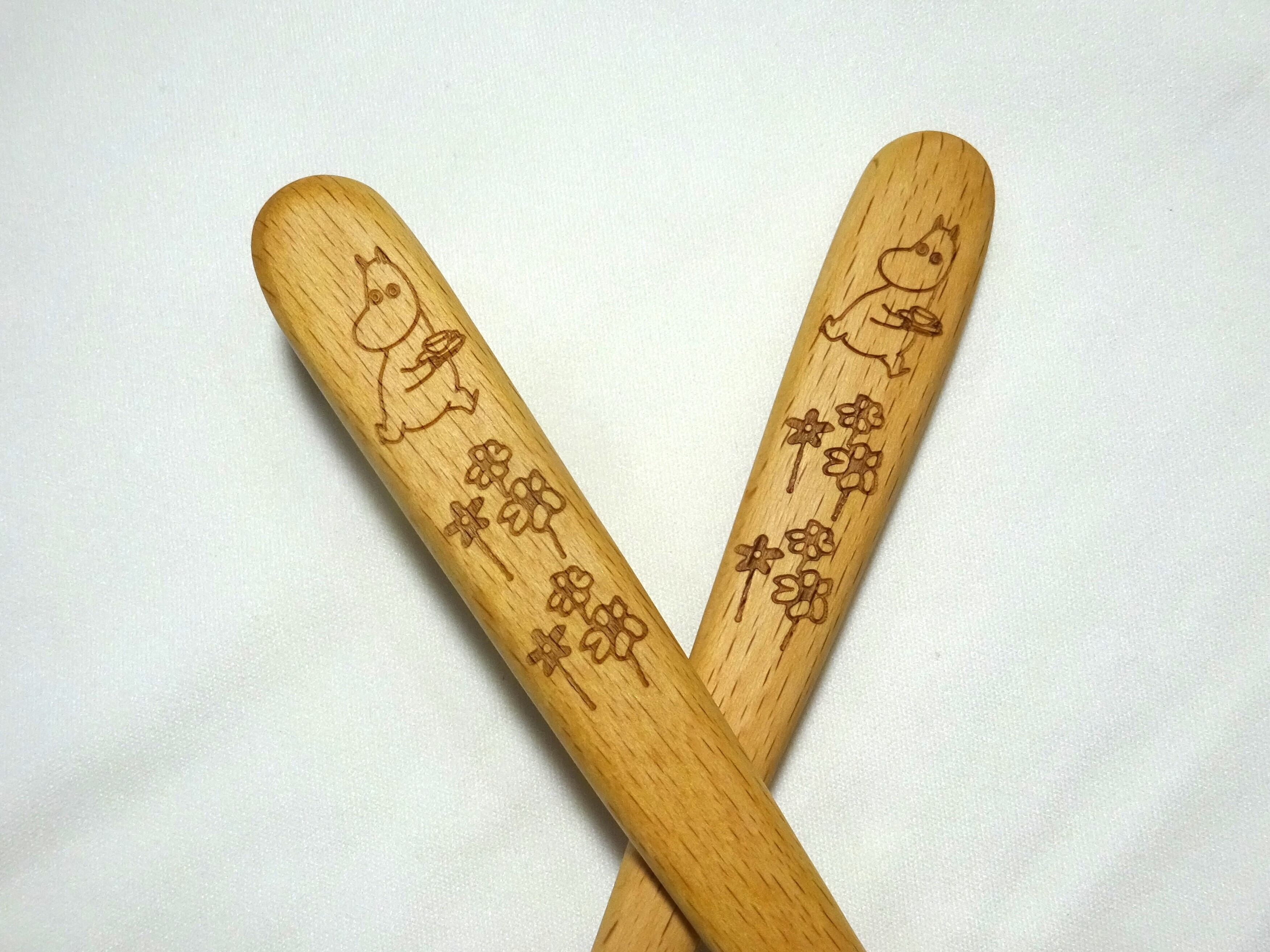 ムーミンとリトルミィが把手に描かれたサーバーフォークとサーバースプーンです。