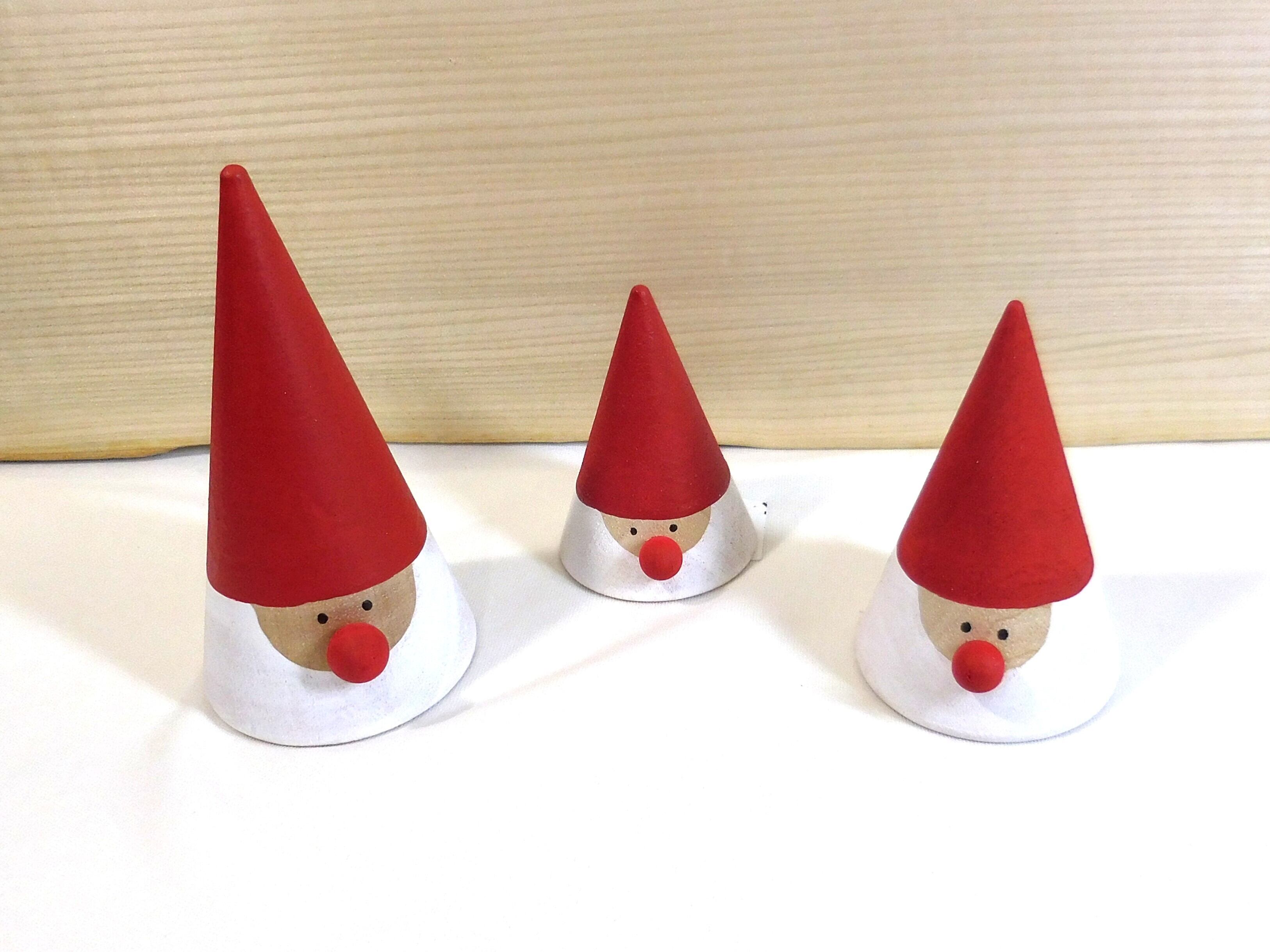 独特の円すい形のサンタは、愛らしい姿に癒されます。玄関やお部屋のクリスマスコーナにいかがですか、