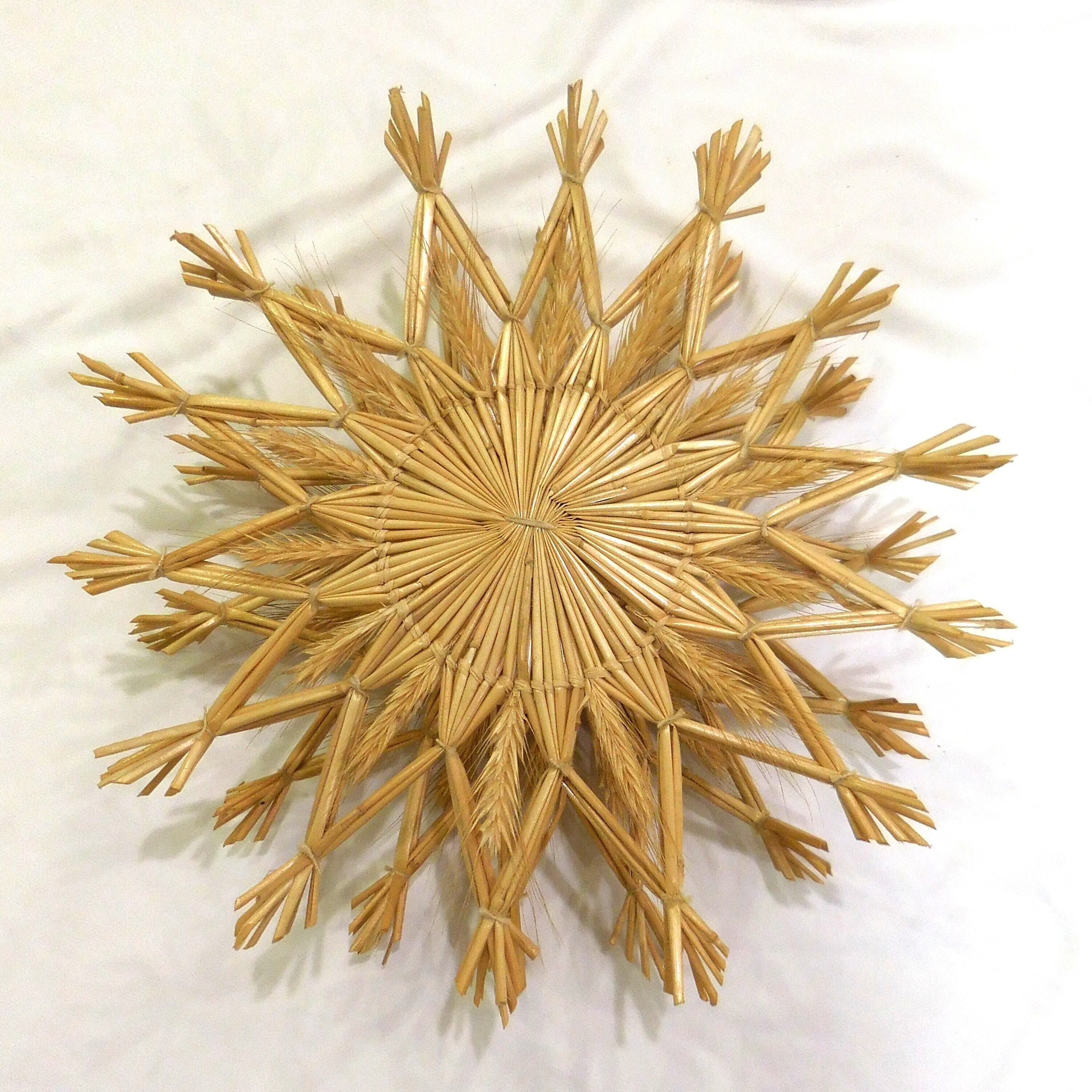 わらで作った手仕事の飾りです。内側にフックがあるので吊るしたり、LED電球などを入れて照明のカサにも利用したらいかがでしょうか。ただ電球の熱にはご注意ください。